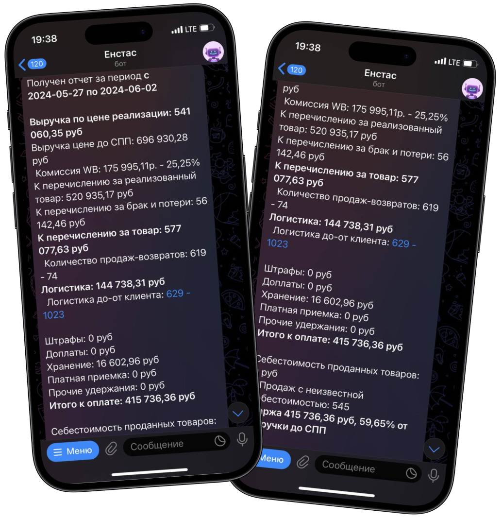 Конечно! По кнопке “Остатки” в главном меню бота - бот сразу посчитает остатки и выведет на экран стоимость остатков и список товаров, которые уже скоро нужно будет допоставить, так же вы сможете скачать детализацию по складам и артикулам, где подробно рассчитано какой товар, на какой склад и как скоро нужно допоставить.